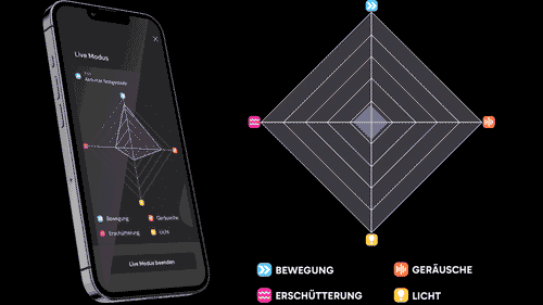 After an alarm, you can use Live Mode to immediately check whether anything has actually changed. The sensors show you movements, sounds, lights, or vibrations – live in the app and without a camera.