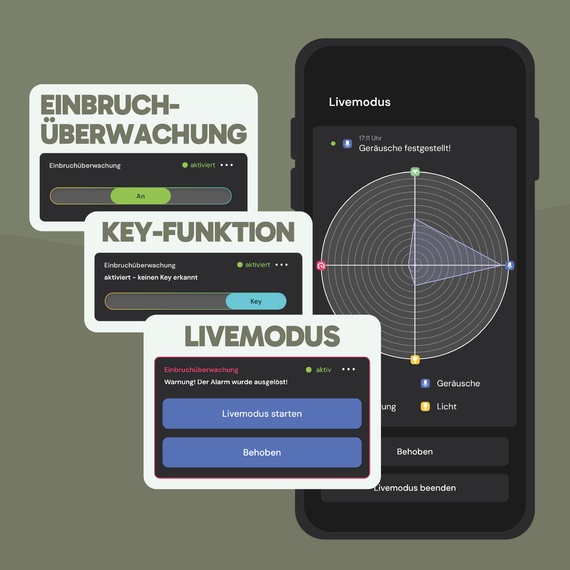 Die sonsor-App ist kostenlos und bietet detaillierte Ansichten sowie individuelle Anpassungsmöglichkeiten deiner intelligenten Alarmanlage. Mit ihr kannst du z.B. dein Eigentum optimal im Blick behalten und wirst im Alarmfall sofort informiert.