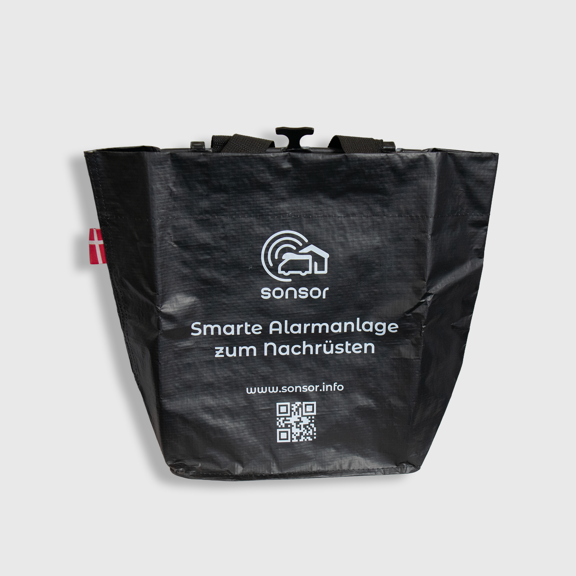 Die nachhaltige sonsor Fahrradtasche besteht aus 100 % recyceltem, gewebtem Polypropylen.